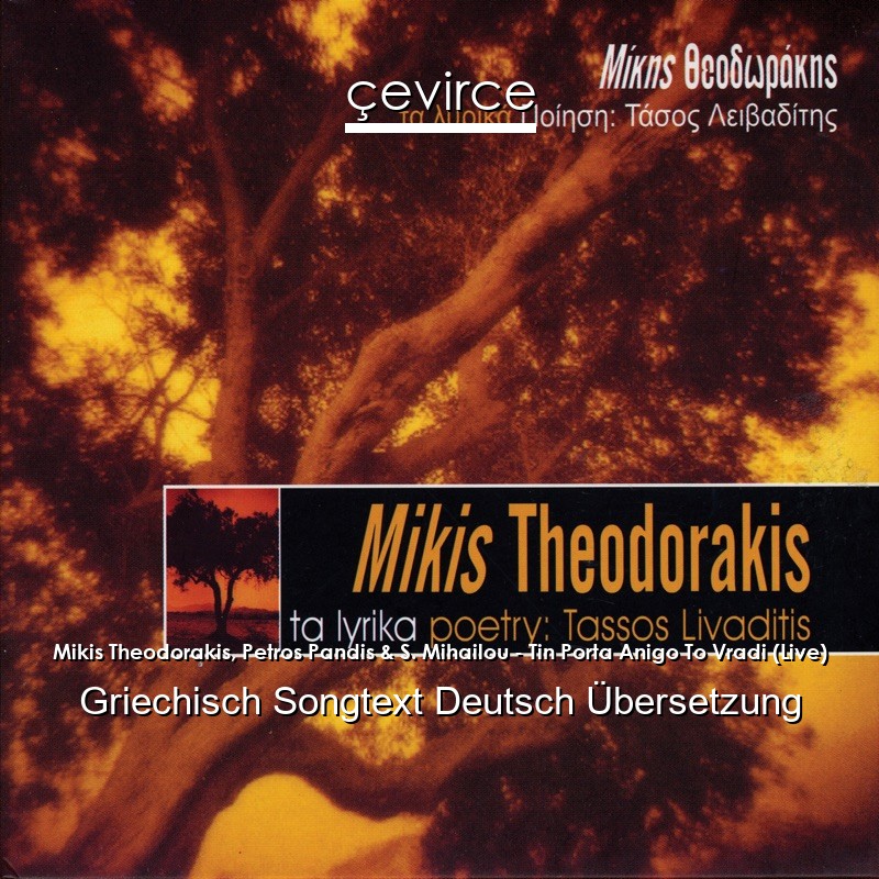 Mikis Theodorakis, Petros Pandis & S. Mihailou – Tin Porta Anigo To Vradi (Live) Griechisch Songtext Deutsch Übersetzung
