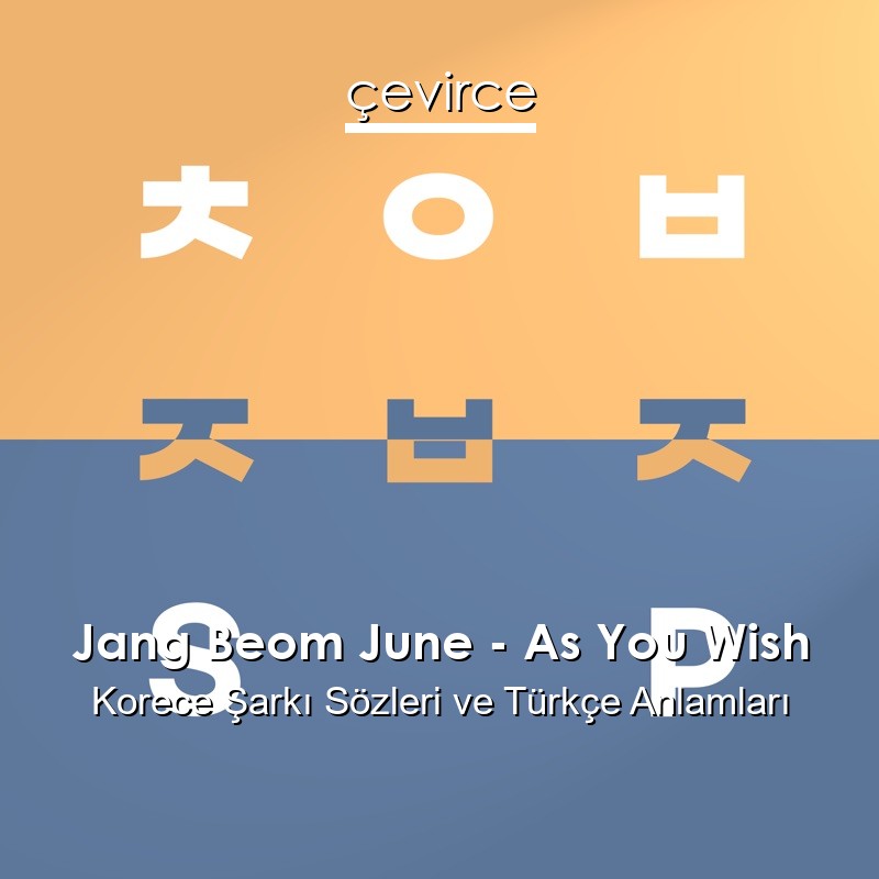 Jang Beom June – As You Wish Korece Şarkı Sözleri Türkçe Anlamları